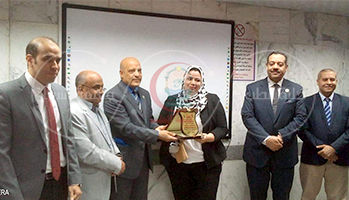 تكريم عميد الكلية لـ د./ ماجده جبرى - مدير برنامج تطوير التعليم بالكلية، تقديراً للجهود المبذوله منها لتطوير العملية التعليمية