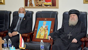 وفد من جامعة أسوان يقدم العزاء بالكنيسة في وفاة المتنيح الأنبا هدرا