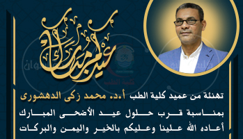 تهنئة أ.د. محمد زكى الدهشورى – عميد كلية الطب بمناسبة قرب حلول عيد الأضحى المبارك