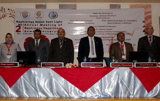 The conference was attended by Prof. Hussein Al-Sharif, previous dean of the faculty and professor of surgery and endoscopy, Aswan faculty of medicine. The conference chairman Dr. Hala Al-Obaidi said that the conference had been preceded by a workshop for the detection and treatment of complications resulted of  hyperparathyroidism surgically. The conference will last for two days to discuss the latest developments in nephrology.