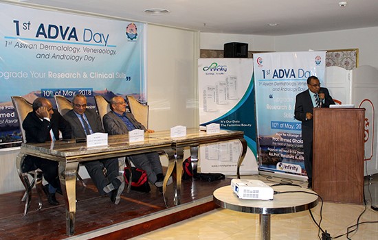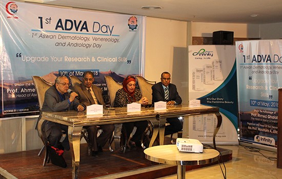 Under the patronage of Aswan university president Prof. Ahmed Ghallab in the presence of the vice president of education and students’ affairs Prof. Hanan Abdel Moneim Awad, the vice president of community service and environmental development Prof. Ahmed Sayed Khalil, the first scientific day of dermatology, venereology and Andrology department entitled “First ADVA Day (Update your research and clinical experience)” was held under the chairmanship of Prof. Mustafa Adam Al-Tiri.