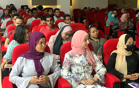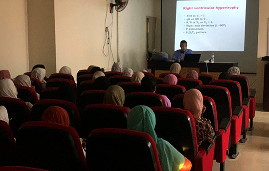 The course was attended by Dr. Saud Al-Saghir, Lecturer of Cardiovascular Diseases at the University Hospital, and the attendance included students of the Faculty of Medicine from all batches from the first to the sixth batch the course dealt with valuable information, both the academic and practical levels, and provided a sufficient explanation on educating the basics of electrocardiogram, which raised the level of student’s awareness of the importance of the electrocardiogram, and its importance for the patient, and how to read it correctly.