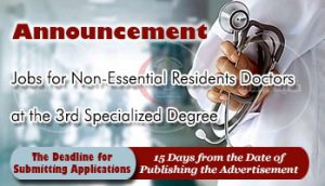 Aswan University announces a “supplementary announcement in university hospitals” for its need to fill the positions of non-essential resident doctors on the third specialized degree by secondment from the various health affairs directorates for a period of three years, and it may be extended to a maximum of five years due to the severe incapacity in the two departments.