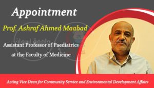 After reviewing Law No. (49) of 1972 regarding the organization of Egyptian universities, its executive regulations, and its modifications, and based on the letter of Prof. Mohamed Zaki Ali Ahmed, Dean of the Faculty of Medicine, Aswan University, it was decided, on Tuesday corresponding to October 17, 2023, to assign Prof. Ashraf Ahmed Maabad Youssef, Assistant Professor of Paediatrics at the Faculty of Medicine, Aswan University, as Acting Vice Dean for Community Service and Environmental Development Affairs for one year from now.