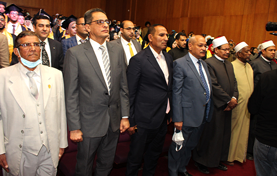 The attendees honored the graduates where Dr. Fahim recited the graduates’ oath and the young doctors repeated after him. At the end of the ceremony, Prof. “Dahsawy” granted Faculty of Medicine’s Shield to the governor, for his part Maj. Gen. Ashraf Atteya granted the Governorate’s Shield to the dean of the faculty of medicine. Prof. Dahshori honored the academic staff and their assistants who were prompted during the academic year, he also honored Students’ Union’s members as appreciation of their efforts in helping their fellow students.