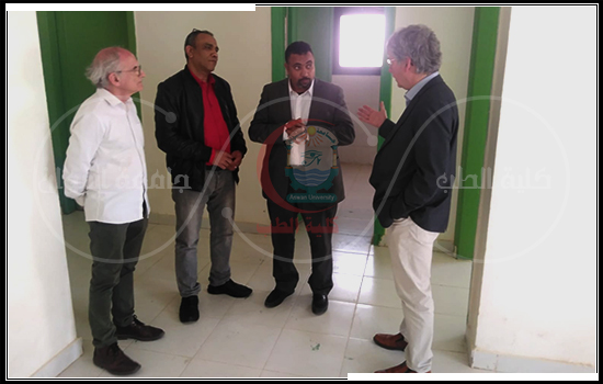 Under the auspices of Prof. Ayman Mahmoud Othman – President of Aswan University, and Prof. Mohamed Zaki Al-Dahshoury – Dean of the Faculty of Medicine, and within the activities of the joint European-Egyptian project (Certificate of Modifying Immunity for Postgraduate Students by The Integrated Education), on Wednesday morning, March 1, 2023, Prof. Claude Lampard – a trainer from France and a member of the joint European-Egyptian project, and Prof. Mikhail Michael – an external resident from the project from Germany, visited the headquarters of the Faculty of Medicine in New Aswan City, where they were accompanied by Prof. Shazly Baghdadi – Head of Chest Diseases Department in Aswan Medicine, the project coordinator, and Prof. Mohamed Mostafa Amin – Vice Dean for Community Service and Environmental Development, where they toured the headquarters of the laboratory to be established through the project at the university and to ensure the extent of its equipment. After that, the visit was followed by a training course on “Flowcytometry”.