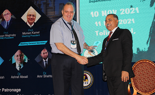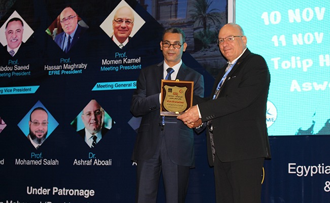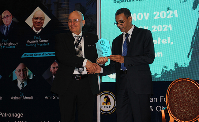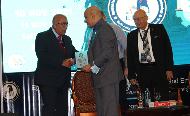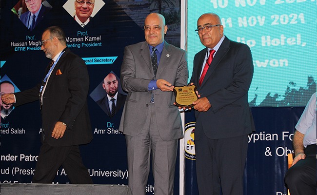 In conclusion, the head of the department presented the shields to Dr. “Othman” the Acting President of Aswan University, Dr. “Dahshoury” the Dean of the Faculty, Dr. “Maghraby” the of the Egyptian Association President, and Dr. “Ayat Allah” the scientific supervisor of the department, and the generous platform in appreciation of their great efforts.