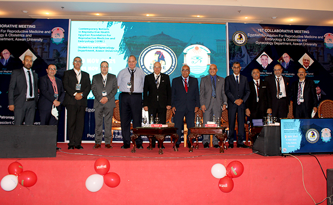 Under the auspice of Prof. Ayman Mahmoud Othman – Acting President of Aswan University, and Prof. Muhammad Zaki Al-Dahshoury – Dean of the Faculty of Medicine; the Department of Obstetrics and Gynecology because of its belief in the importance of Aswan Governorate as the capital of the Africa continent which should always be the focus of attention in all fields of life, and in line with the presidential initiatives towards providing education and health in all parts of Egypt, the initiative was held today, on Wednesday, corresponding to November 10, 2021, to launch the first conference of the Department of Obstetrics and Gynecology which is scheduled to continue until tomorrow, on Thursday corresponding to November 11, 2021, and is the first of its kind that discusses the latest results it has gained in the field of IVF by an elite of Egyptian scientists in this field. This event is considered a new breakthrough from Aswan University, and this comes under the supervision of Prof. Abdo Said Ait Allah – Professor of Obstetrics and Gynecology at Sohag University and the scientific supervisor of the Women and Obstetrics Department, Faculty of Medicine, Aswan University, and Prof. Mohamed Saleh El-Din Fahmy – Head of the Obstetrics and Gynecology Department at Faculty of Medicine in Aswan, in cooperation with the Egyptian Foundation for Reproductive Medicine and Embryology headed by Prof. Hassan Maghraby – President of the Association; the conference was organized by the academic staff of the Obstetrics and Gynecology Department, at Faculty of Medicine in Aswan.