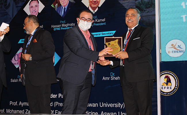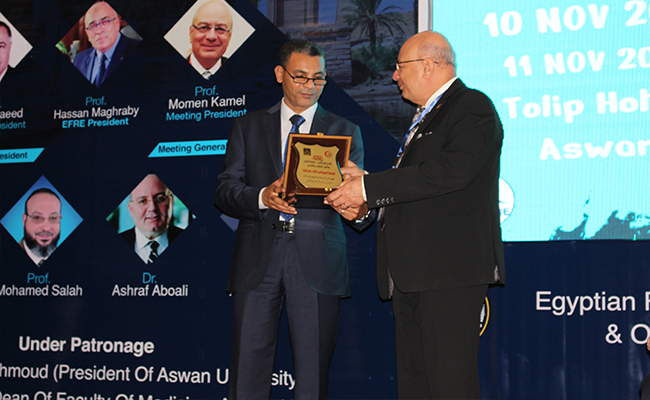 The conference was opened by “Othman” Acting President of Aswan University, by welcoming the attendees, pointing to the effective role that the administration of the Faculty of Medicine plays represented by “Al-Dahshoury”, the Dean of the faculty, as it takes on its shoulder upgrading the health system to achieve the best service for the patients of the governorate and neighboring governorates; as well as His Excellency praised the role of the university in general and the role of the Faculty of Medicine in particular in raising the classification of Aswan University in international rankings (Aswan University is among the best 500 universities in the world – and ranked the first at the level of citations) for what the faculty does in holding scientific conferences and publishing scientific research, and that the university is always and forever supports these activities and scientific conferences to spread awareness and keep pace with all what is new in the field of medical science.