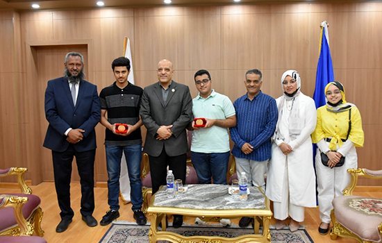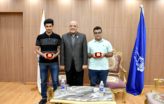 This is because they obtained the third and fourth places in the final list of the top high school students at the level of the Republic ((Scientific Maths Division), wishing them and all successful high school students continued success. His Excellency also presented the university shield to them and urged them to excel and achieve the first practical positions