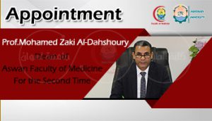 After viewing the constitution and laws of the University Organisation issued by No. 49 for 1972, according to what’s presented by the Minister of Higher Education and Scientific Research, it’s decided to appoint Prof.Mohamed Zaki Al-Dahshoury as Dean of the Faculty of Medicine at Aswan University for three years by the President’s Decree No. 394 for 2023, issued on September 24, 2023.