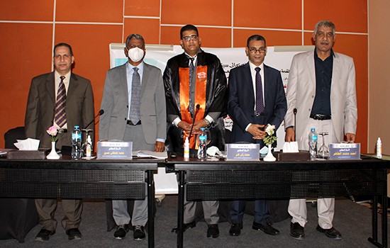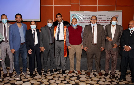 Amid applying precautionary measures to protect against COVID 19, Today corresponding to 26th March 2021, the doctoral thesis of Dr. Amr Alam El-Din Ahmed_ Assistant Lecturer of Professor of Urology and Nephrology at Faculty of Medicine_ Aswan University, was discussed, entitled: