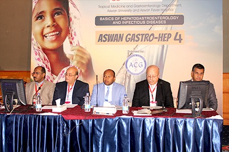 Today corresponding to 26th Feb. 2020, the first day of the Fourth Annual Conference of Tropical Medicine and Gastroenterology Department was held in cooperation with The Egyptian Association for Research and Training on Liver and Intestinal Diseases in addition to the department of gastroenterology and hepatology at Aswan Fever Hospital, it is entitled Basics of Hepatogastroenterology and Infectious Diseases.