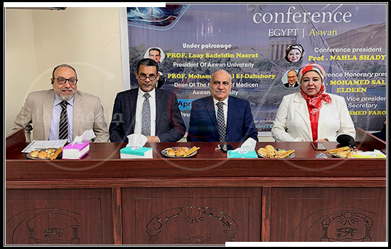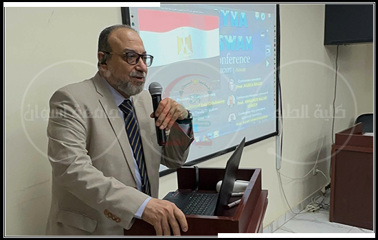 The conference started with words from the Holy Quran, followed by the national hymn. The university president, Nasrat, then presented a welcome speech to the attendees. He emphasized the Faculty of Medicine’s role in elevating Aswan University’s status, stating that the faculty’s departments hold several conferences each year to stay current with medical developments and to transfer expertise from senior professors to young doctors. He hoped that the attendees will profit from the scientific lectures and enjoy the beautiful scenery of Aswan Governorate.