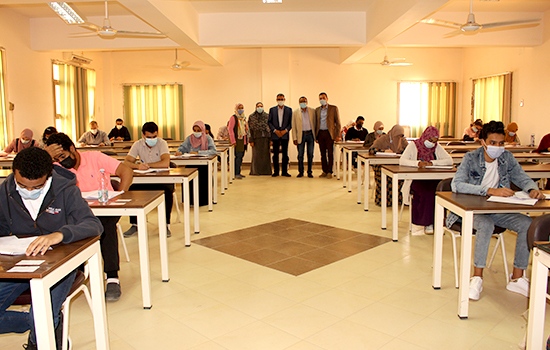 Prof. Dahshuri declared that signals for safe distances and for entry and exit are placed in the halls. All means of protection as for disinfecting the halls pre and after exam are provided while stressing on the necessity of students to enter and exit from the targeted gates to prevent stampede. For his part, Prof. Al-Tiri checked up on the absence of any obstacles that may prevent students from properly answer the test wishing them success.