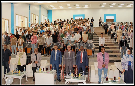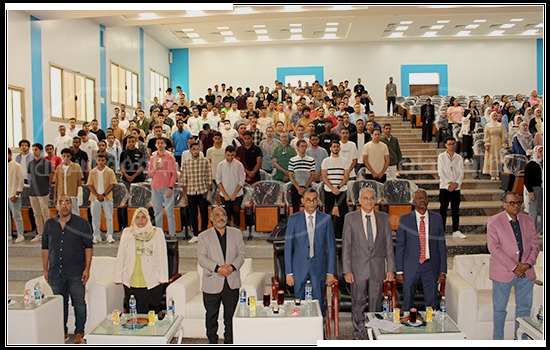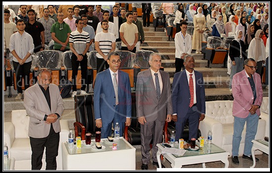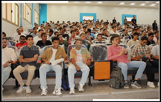 The faculty’s dean, Al-Dahshouri, welcomed new and veteran students and congratulated them on their spectacular October successes. His Excellency addressed the students, encouraging them to put forth adequate effort and perseverance in their studies to be a good nucleus in society that serves and benefits those around them. He also encouraged them to be serious and sincere in word and deed so that God may grant them success and crown their efforts with great success.