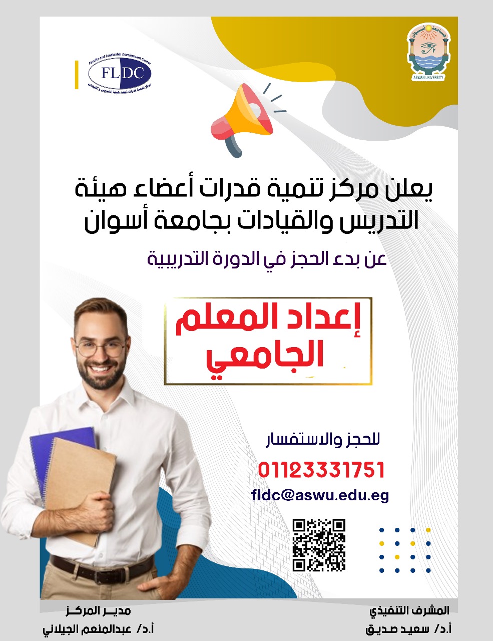 The Centre for Academic Staff Capacity Development and Aswan University leadership, led by Prof. Abdel Moneim Al-Jilani (Centre Manager) and Prof. Sa’eed Saddek (Executive Supervision), announce the start of registration for the training course: