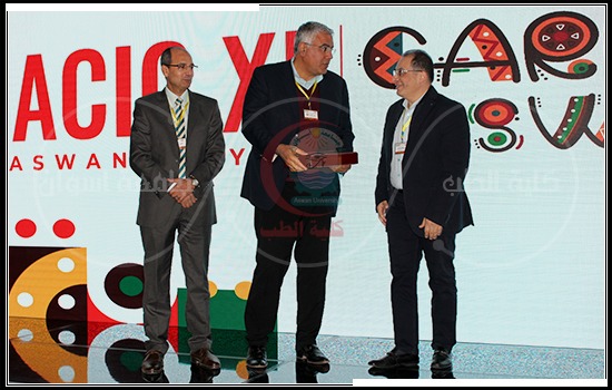 On the sidelines of the conference, the conference supervisors presented shields in appreciation to the university administration, represented by “Othman” the university president, and the administration of the faculty and the university hospital, represented by “Dahshoury” the dean of the faculty, “Ma’bad” the executive director of Aswan University Hospitals, as well as honoring many conference guests for their role in the success of the conference.