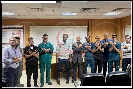 Dr. Mustafa Mahmoud, Dr. Marco Shahat, Dr. Mohamed Zakaria, and residents of the Vascular Surgery Department.