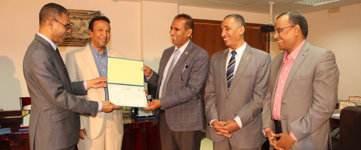 مجلس كلية الطب يكرم فريق القافلة الطبية لدولة جيبوتي ويقدم درع الكلية لرئيس الجامعة