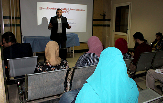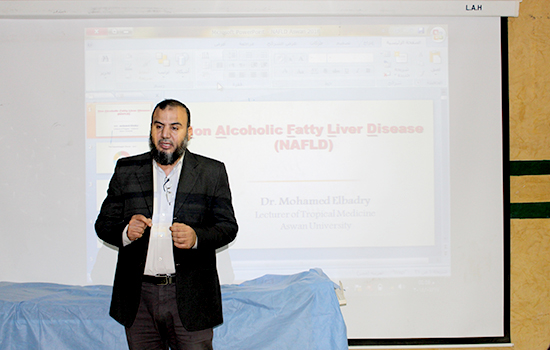 المقام بقاعة المحاضرات بقسم طب المناطق الحارة والجهاز الهضمى بمقر مستشفى أسوان الجامعى، وذلك تحت إشراف السيد الدكتور/ محمد البدرى – رئيس القسم، هذا وقد تناول اللقاء:
