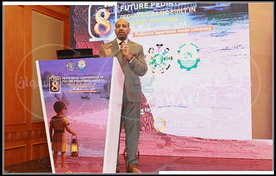 تحت رعاية السيد الأستاذ الدكتور/ اؤى سعد الدين نصرت – قائم بعمل رئيس جامعة أسوان، والأستاذ الدكتور/ محمد زكى الدهشورى – عميد الكلية، بتشريف وحضور الأستاذ الدكتور/ حنان عبد المنعم عوض – نائب رئيس جامعة أسوان الأسبق لشئون التعليم والطلاب وأستاذ طب الأطفال، والأستاذ الدكتور/ محمود الموجى – رئيس جمعية أطباء أطفال المستقبل ورئيس المؤتمر، والأستاذ الدكتور/ أشرف معبد – المدير التنفيذي لمستشفيات جامعة أسوان، تحت إشراف الأستاذ الدكتور/ بهاء الهوارى – سكرتير عام المؤتمر ورئيس قسم طب الأطفال بأسوان، إنطلق أمس الأربعاء الموافق 11 فبراير 2026، المؤتمر العلمي الثامن لجمعية أطباء أطفال المستقبل بالتعاون مع قسم طب الأطفال بأسوان، بفندق توليب بمحافظة أسوان الساحرة.