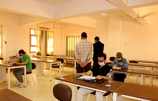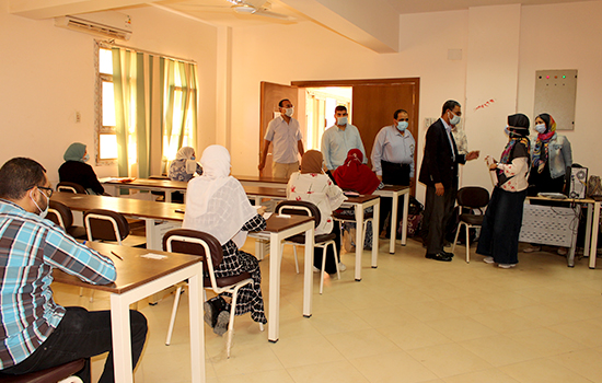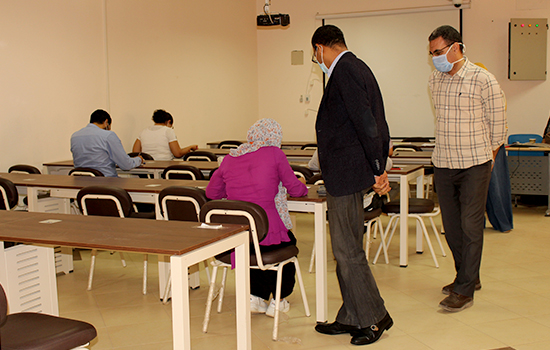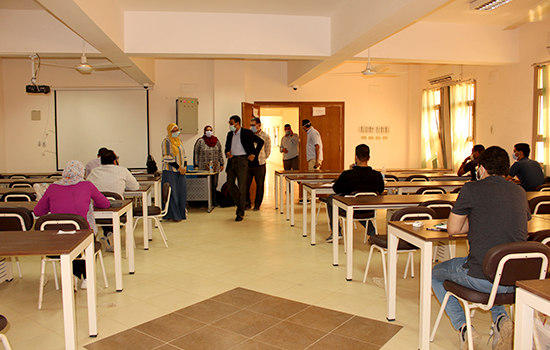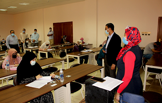 وأشار “الدهشورى” عميد الكلية، أنه يتم التأكد من تجهيز القاعات وذلك بوضع مسافات آمنة بين مقاعد الطلاب وعلامات إرشادية واضحة للدخول والخروج، لافتاً إلى أنه تم توفير كافة المستلزمات الوقائية اللازمة لتعقيم اللجان وتطهيرها قبل وبعد الإمتحانات، إلى جانب التشديد على ضرورة دخول الطلاب بتسلسل من البوابات المحددة لهم لمنع التدافع، مع إلزام الطلاب والمراقبين بارتداء الكمامات الطبية، وضمان خروجهم بشكل منظم فور الإنتهاء من الإمتحانات، كما إطمئن سيادته على عدم وجود عقبات وكذلك على راحة الطلاب، وعلى تواجد جميع المراقبين ورؤساء اللجان والكنترول، متمنياً للطلاب مزيد من النجاح والتفوق.