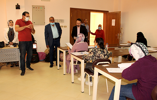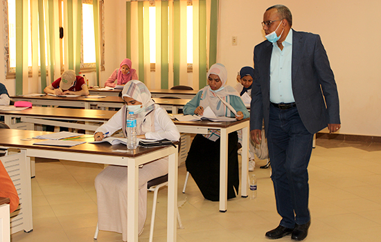 وأشار “الطيرى” وكيل الكلية لشئون التعليم والطلاب، أنه تم التأكد من تجهيز القاعات وذلك بوضع مسافات آمنة بين مقاعد الطلاب وعلامات إرشادية واضحة للدخول والخروج، لافتاً إلى أنه تم توفير كافة مستلزمات الوقاية اللازمة لتعقيم اللجان وتطهيرها قبل وبعد الإمتحانات، إلى جانب التشديد على ضرورة دخول الطلاب بتسلسل من البوابات المحددة لهم لمنع التدافع، مع إلزام الطلاب والمراقبين بإرتداء الكمامات الطبية، وضمان خروجهم بشكل منظم فور الإنتهاء من الإمتحانات، كما إطمئن سيادته من الطلاب على عدم وجود عقبات وكذلك على راحة الطلاب، وعلى تواجد جميع المراقبين ورؤساء اللجان والكنترول، متمنياً لهم مزيد من النجاح والتفوق.