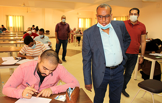 تشهد كلية الطب اليوم الأحد الموافق 29 أغسطس 2021، إنعقاد أولى لجان إمتحانات الدور الأولى للفرقة الخامسة (مادة الباطنة – ورقة ثانية «خاصات») للعام الأكاديمى 2021/2020، وقد تفقد السيد الأستاذ الدكتور/ مصطفى آدم الطيرى – وكيل كلية الطب لشئون التعليم والطلاب، لجان الإمتحانات ورافقة الدكتور/ أحمد مصطفى مغربى – رئيس اللجان ومدرس الجراحة العامة بكلية الطب، وذلك للتأكد من تطبيق كافة الإجراءات الإحترازية والتدابير الوقائية التى إتخذتها الجامعة بلجان الإمتحانات التى تم الإعلان عنها من قِبل منظمة الصحة العالمية ووزارتى الصحة والتعليم العالى والبحث العلمى للوقاية من فيروس كورونا المستجد، حيث قامت إدارة الكلية بتوزيع كمامات على الطلاب قبل دخول الإمتحانات وكذلك تعقيمهم بالكحول وذلك لضمان سلامة وصحة الطلاب وكذلك أعضاء هيئة التدريس والعاملين أثناء فترة الإمتحانات.