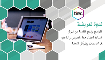نظراً للإقبال الشديد من السادة أعضاء هيئة التدريس والباحثين، فسوف يقوم مركز الإبداع التكنولوجى وريادة الأعمال (TIEC) بهيئة تنمية صناعة تكنولوجيا المعلومات التابعة لوزارة الإتصالات وتكنولوجيا المعلومات، بتنظيم ندوة تعريفية أخرى بالبرامج والمنح المقدمة من المركز للسادة أعضاء هيئة التدريس والباحثين فى الجامعات والمراكز البحثية على مستوى الجمهورية، وذلك بحضور السيد الدكتور/ حسام عثمان – مستشار وزير الإتصالات للإبداع التكنولوجى والتدريب ونائب الرئيس التنفيذى لهيئة تنمية صناعة تكنولوجيا المعلومات ( ITIDA).