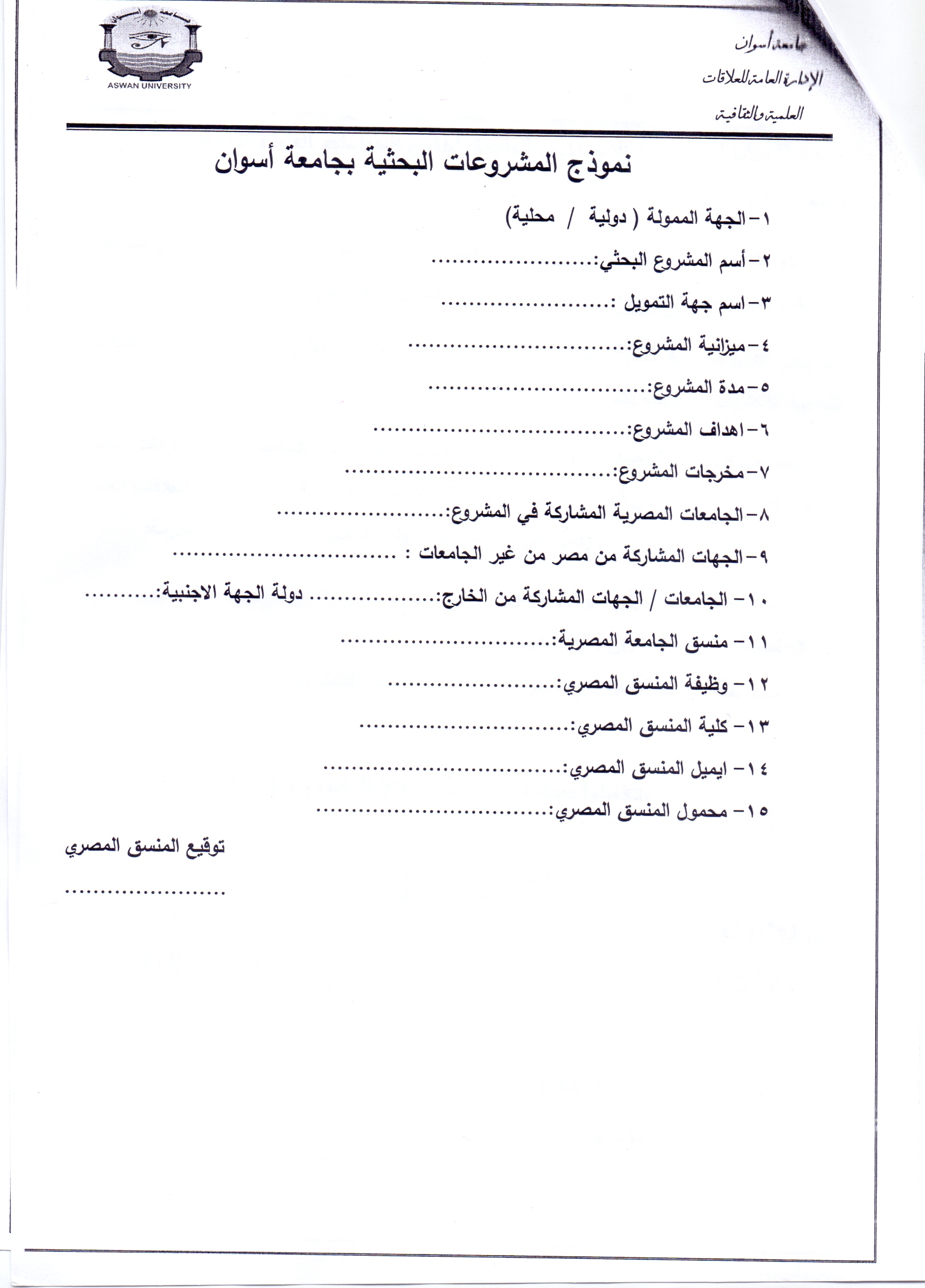 - إستيفاء النموذج المرفق من قِبل منسق المشروع النموذج المطلوب