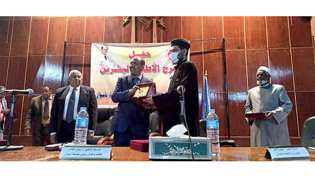 وأوضح الدكتور “الدهشوري” عميد كلية الطب بأسوان، أن حفل التخرج للدفعة الخامسة لعام 2021 بكلية طب أسوان هو تقليد يتم كل عام للخريجين من أطباء الإمتياز، مضيفاً أنه تم تكليف الأطباء بهذه الدفعة كنواب وأطباء مقيمين للعمل داخل مستشفى أسوان الجامعى، في التخصصات الطبية المختلفة كالجراحة والنسا والتوليد والعظام والأسنان وغيرها، والتى قاموا بإختيارها بشفافية كاملة بناءًا على رغباتهم حسب مجموع درجات كل منهم، فيما يقوم البعض منهم بالعمل في الأقسام الأكاديمية بكلية طب أسوان، وأشار سيادته إلى أن السنة الدراسية الأولى بالكلية بدأت في العام الدراسى 2014/2013 عقب صدور القرار الجمهورى رقم (200) لسنة (2013) بإنشاء كلية الطب بجامعة أسوان حيث تم إلتحاق الطلاب بالكلية من المحافظات الأخرى التي كانوا بها في سنوات دراسية مختلفة.