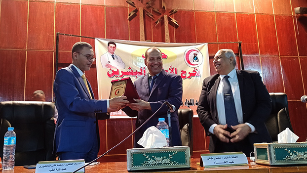 وقام السادة الحضور بتكريم الخريجين، وقام الدكتور “فهيم” أمين النقابة بتلاوة قسم الخريجين وقام شباب الأطباء بترديد القسم خلف سيادته.