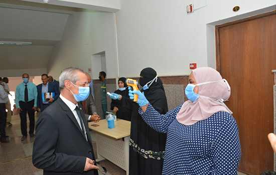 إنعقد اليوم الإثنين الموافق 25 أغسطس 2020، مجلس جامعة أسوان رقم (97)، برئاسة الأستاذ الدكتور/ أحمد غلاب محمد – رئيس الجامعة، بحضور الأستاذ الدكتور/ أيمن عثمان – نائب رئيس الجامعة للدراسات العليا والبحوث، والسادة عمداء الكليات ومستشارى رئيس الجامعة وأمين عام الجامعة، وسط إجراءات احترازية ووقائية بإرتداء الكمامات الطبية وقياس الحرارة عند دخول قاعة كلية الزراعة والموارد الطبيعة بالحرم الجامعى بصحارى.