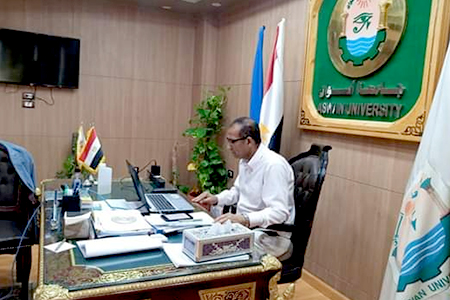 إنعقد اليوم الإثنين الموافق 29 يونيو 2020 مجلس جامعة أسوان رقم (95)، برئاسة الأستاذ الدكتور/ أحمد غلاب محمد – رئيس الجامعة، عبر الفيديو كونفرانس، بحضور السيد نائب رئيس الجامعة للدراسات العليا والبحوث والسادة عمداء الكليات.