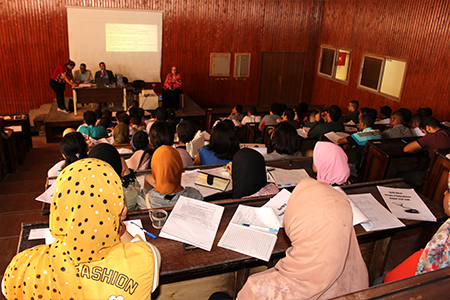 إجتمع صباح اليوم الإثنين الموافق 24 سبتمبر 2019، السيد الأستاذ الدكتور/ محمد زكى الدهشورى – عميد كلية الطب، والسيد الأستاذ الدكتور/ مصطفى آدم الطيرى – وكيل الكلية لشئون التعليم والطلاب، بطلاب الفرقة الأولى الجدد للعام الأكاديمى 2020/2019، خلال لقائه بهم قام “الدهشورى” عميد الكلية بحث الطلاب على الإنتظام فى الدراسة وتشجيعهم على الإجتهاد لتحقيق أهدافهم ليكونوا نواه صالحه بالمجتمع، ومن جانبه قام “الطيرى” وكيل الكلية لشئون التعليم والطلاب بتوضيح اللائحة للطلاب، وكذلك تسهيل وتذليل كافة العقبات لتيسير الدراسة لهم، متمنيين للطلاب التفوق والنجاح.