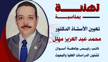 تهنئة الدهشورى لتعيين أ.د./ محمد عبد العزيز مهلل – نائباً لرئيس الجامعة لشئون الدراسات العليا والبحوث