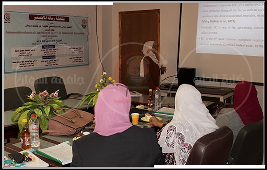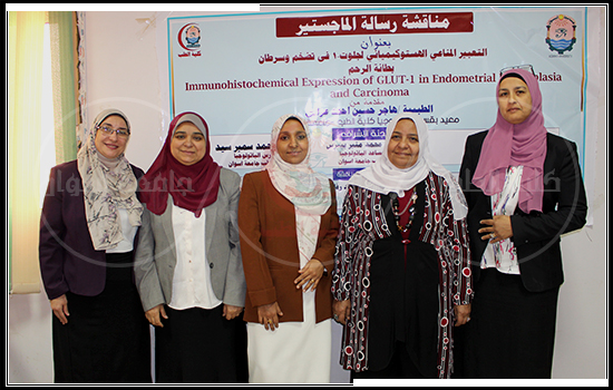 تم ظهر اليوم الأربعاء الموافق 1 مايو 2024، مناقشة رسالة الماجستير للطبيبة/ هاجر حسين أحمد عرابى – معيدة بقسم الباثولوجيا بكلية الطب جامعة أسوان، بقاعة السيمينار بالكلية، والتي بعنوان: