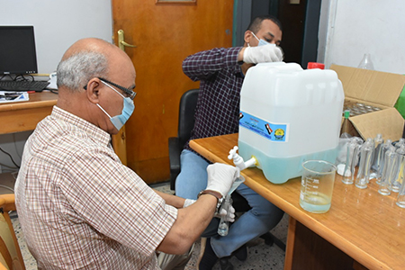 وفى نفس الإطار فقد أفاد السيد الأستاذ الدكتور/ عميد كلية العلوم بأنة تم حتى الآن إنتاج (80) لتر والتى تطبق سبل الجودة المنصوص عليها من منظمة الصحة العالمية.