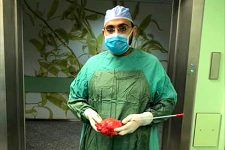 تحت رعاية السيد الأستاذ الدكتور/ محمد زكى الدهشورى – عميد كلية الطب وأستاذ جراحة المسالك البولية والتناسلية، تحت إشراف السيد الأستاذ الدكتور/ محمد مصطفى حسين – رئيس قسم المسالك البولية والتناسلية بكلية الطب البشرى، قام فريق طبى متكامل بعمل إستئصال جذري للمثانة (Radical cystectomy)، نتيجة وجود ورم خبيث وتم عمل حافظة بولية من الأمعاء الدقيقة وقد تم عمل الإستئصال فى وقت قياسى (ساعة ونصف)، حيث أن المريض فى حاله مستقرة ويتابع عملية التعافى بالمستشفى الجامعى،