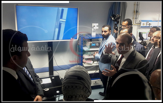ورافق “عثمان” رئيس جامعة أسوان، و“مهلل” نائب رئيس الجامعة للدراسات العليا والبحوث، و“معبد” المدير التنفيذى لمستشفيات جامعة أسوان، وفد مؤسسة البنك التجارى الدولى خلال جولة تفقدية بالقسم بعد إفتتاحه والإستماع لشرح من الدكتور “هانىء” منسق المشروع، عن أعمال التطوير التى تمت لقسم جراحة المخ والأعصاب.