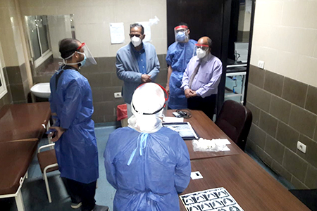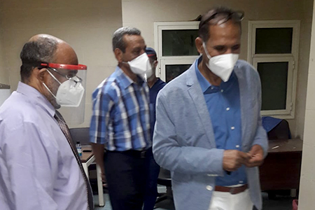 وأشار الدكتور “غلاب” إلى تنظيم عملية دخول المرضى لقسم الإستقبال فى المستشفى بحيث يدخل المريض بمفرده أو مع مرافق واحد فقط إن كانت حالتة تستدعي لذلك، ويراعى أخذ الإحتياطات اللازمة لمكافحة إنتشار العدوى حيث يشترط إرتداء المرضى ومرافقيهم للكمامات أثناء دخول المستشفى علاوة على توفير مستلزمات الوقاية اللازمة لجميع أفراد الطاقم الطبى فى المستشفى من كمامات وقفازات حفاظاً على سلامة الجميع.